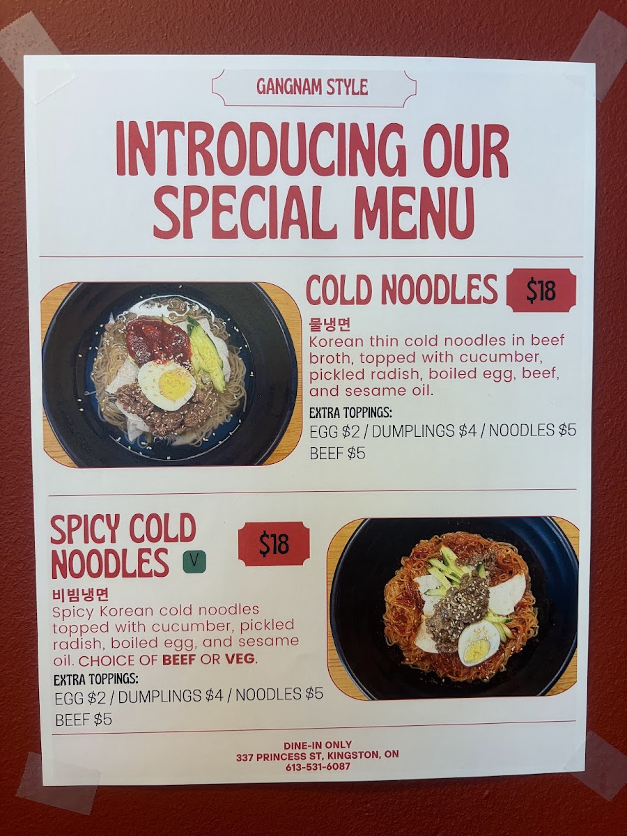 In summary, Gangnam Style's menu is an exciting blend of traditional and modern Korean cuisine, offering everything from spicy grilled plates and hearty soups to flavorful rice and noodle dishes. Each dish promises a satisfying experience, and with prices that vary depending on your choice, it's an ideal spot for anyone looking to enjoy authentic Korean flavors in Kingston.